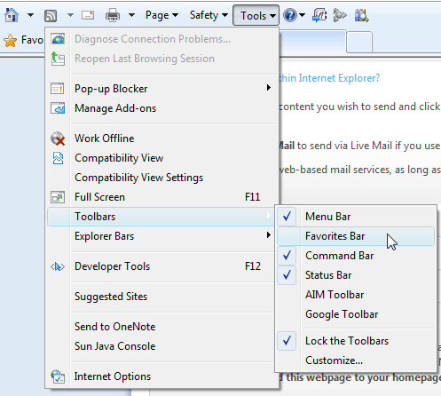 How To Enable The Favorites Bar On Internet Explorer - YouTube